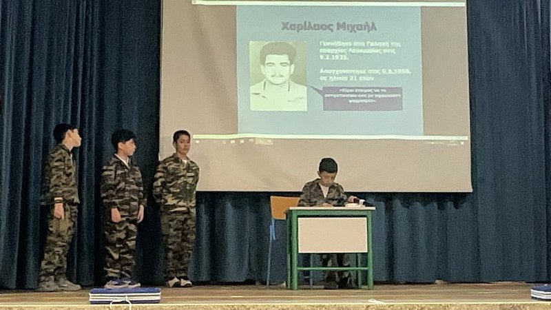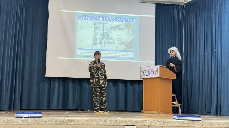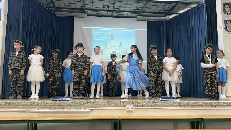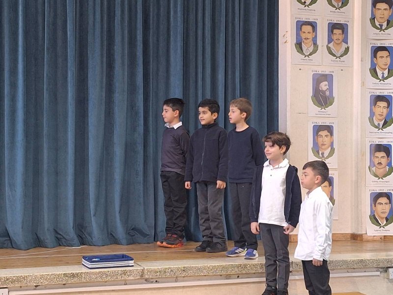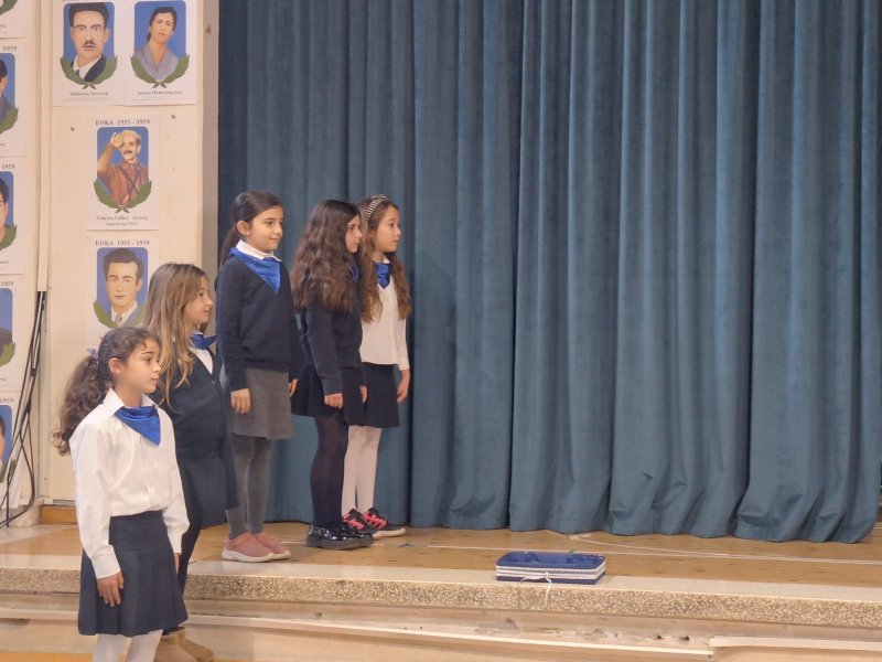 Τα παιδιά του σχολείου μας, τίμησαν την επέτειο της 1ης Απριλίου με ενδοσχολικό εορτασμό. Συμμετείχαν τα τμήματα Α3, Β3 και Γ3.