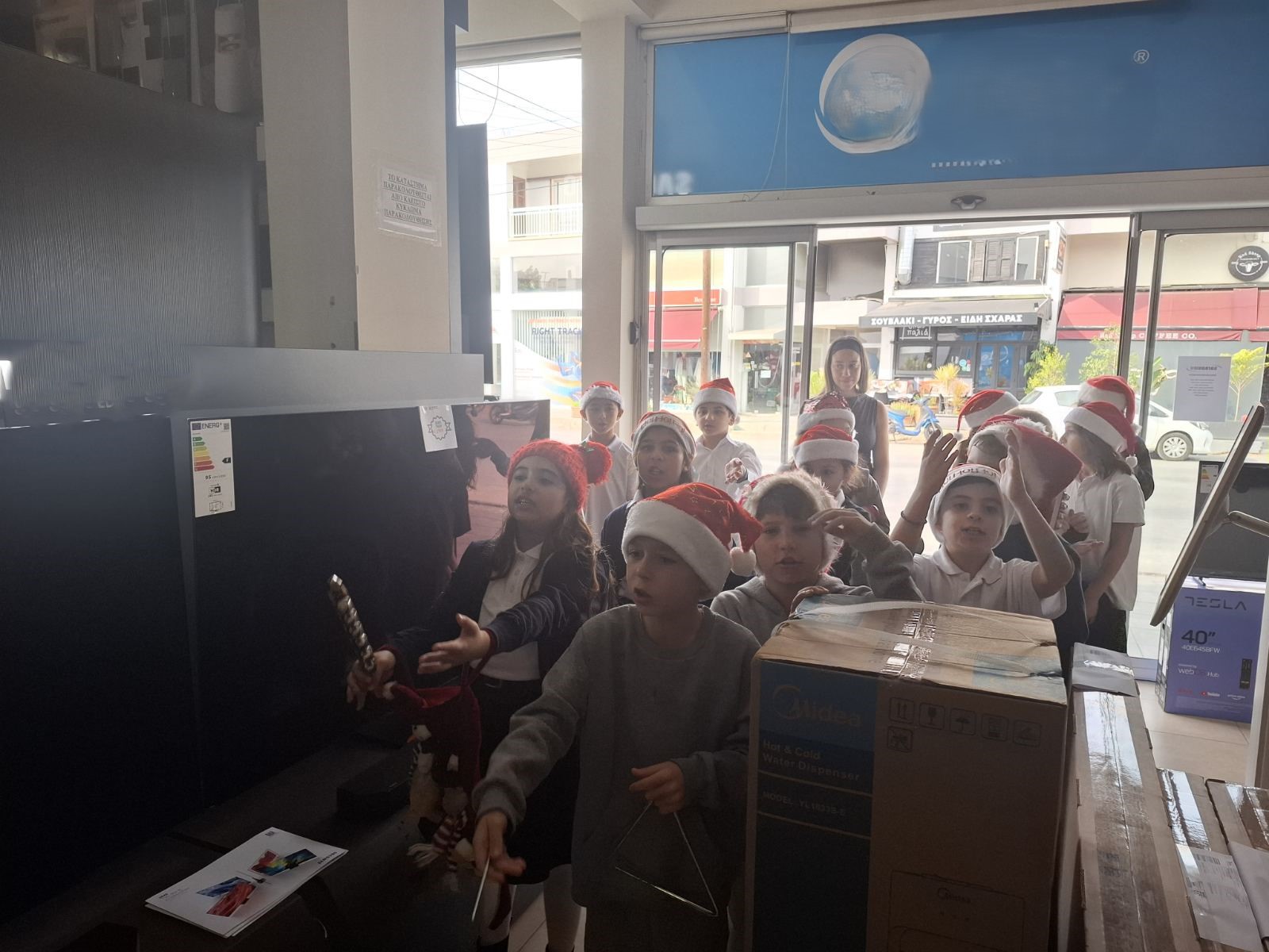 Σήμερα, 03/12/2025, οι μαθητές/μαθήτριες της Γ΄ τάξης βγήκαν στη γειτονιά του σχολείου μας για να πουν τα κάλαντα, αναβιώνοντας ένα όμορφο και αγαπημένο έθιμο. Με μεγάλο ενθουσιασμό τραγούδησαν στα καταστήματα και στα γραφεία της περιοχής, όπου τους υποδέχθηκαν με χαμόγελα και κεράσματα. Τα παιδιά ένιωσαν περήφανα που κατάφεραν να συγκεντρώσουν χρήματα για να πραγματοποιηθούν έργα που θα ομορφύνουν ακόμη περισσότερο το σχολείο μας. Ήταν μια εμπειρία που τους γέμισε χαρά και τους έδωσε την ευκαιρία να ζήσουν έμπρακτα την παράδοση μέσα από μια δράση που αγαπήθηκε τόσο από τα ίδια όσο και από όσους τα άκουσαν.