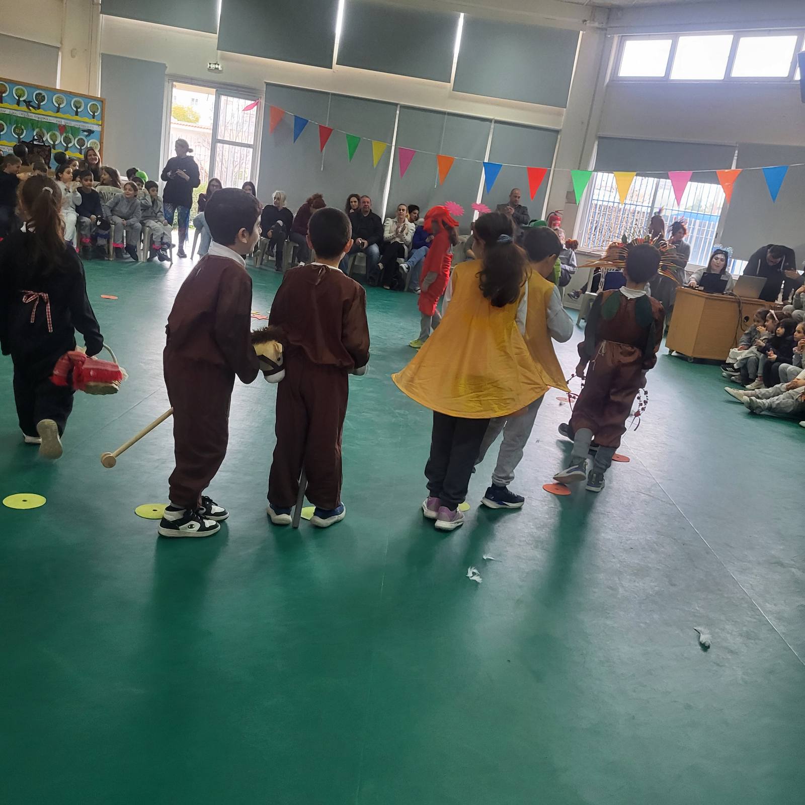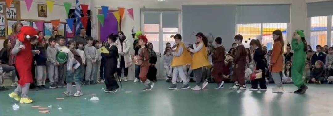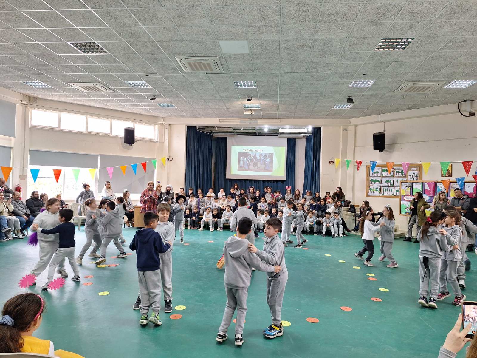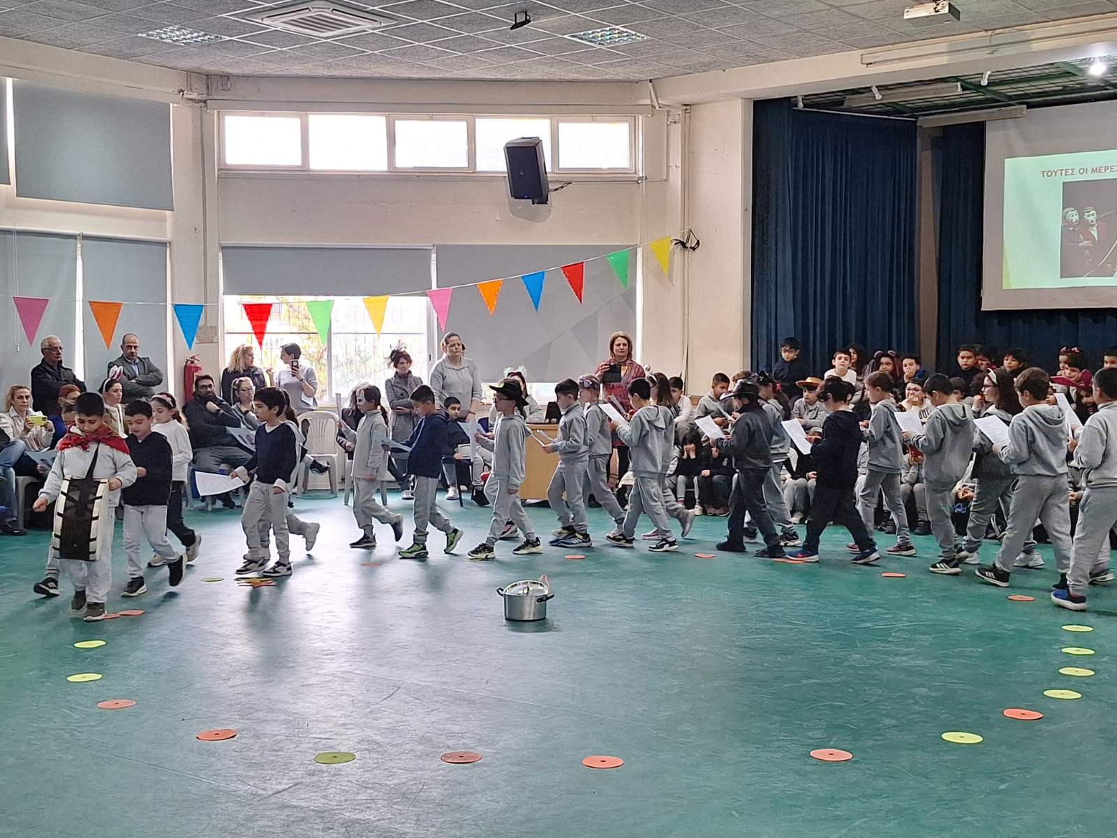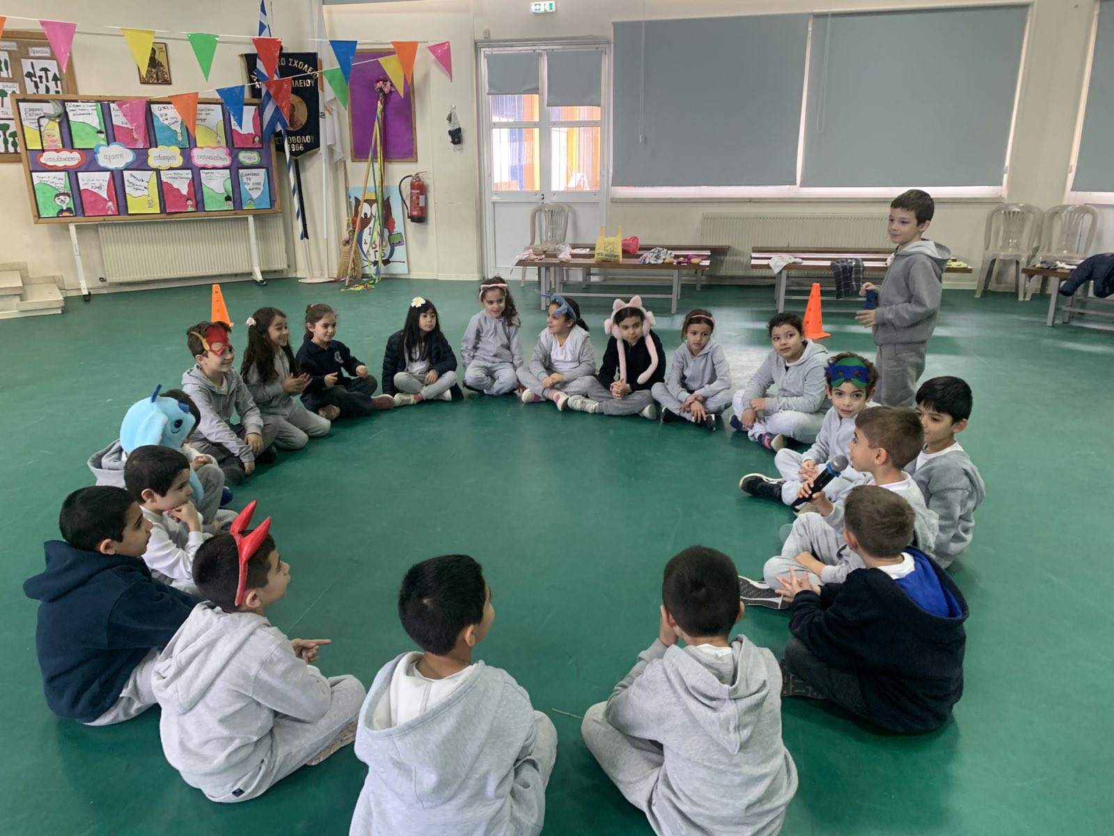 Τα παιδιά, μαζί με τις δασκάλες τους, συμμετείχαν σε παραδοσιακά παιχνίδια στην αυλή του σχολείου, ενώ η γιορτή συνεχίστηκε στην Αίθουσα Πολλαπλής Χρήσης με παιγνιδοτράγουδα, παραδοσιακούς αποκριάτικους χορούς και σκωπτικά δρώμενα, με τη συμμετοχή όλων.