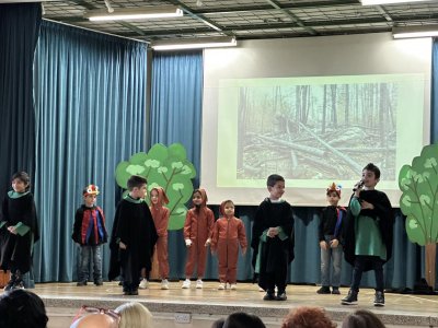 Η ημέρα ξεκίνησε με τη Γιορτή του Δέντρου από τους μαθητές και τις μαθήτριες της Α΄ τάξης, οι οποίοι παρουσίασαν με ενθουσιασμό το θεατρικό τους έργο στους γονείς και σε όλη τη σχολική κοινότητα. Μέσα από τη χαρά και τη δημιουργικότητά τους, μετέφεραν το διαχρονικό μήνυμα ότι τα δάση ανήκουν σε όλους μας και ότι έχουμε χρέος να τα προστατεύουμε και να τα παραδώσουμε ανέπαφα στις μελλοντικές γενιές. Θερμά συγχαρητήρια στα πρωτάκια μας για την εξαιρετική τους παρουσία!